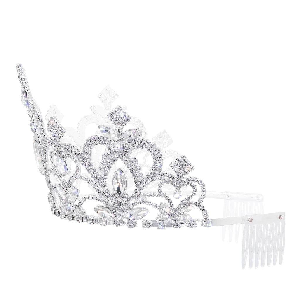 3.75" high x 5.5" diameter. Plated in Sterling Silver with a comb on each end fits all size heads. Each piece is individually wrapped in plastic.