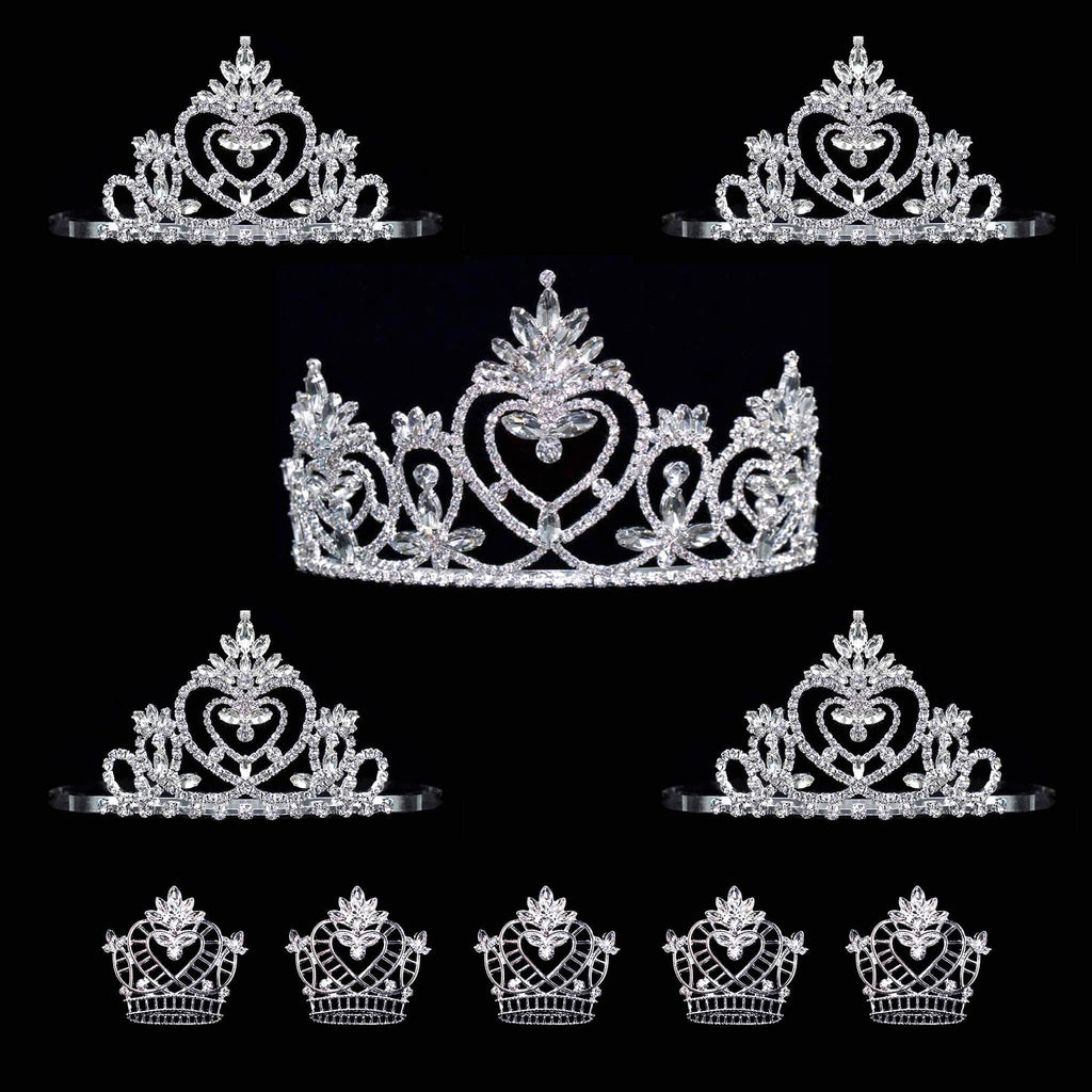 Crown the court simply with this group of matching tiaras! The #16454 Pageant Praise Tiara is larger at 4" to make the Queen shine, while the 4 smaller 2.5" tall versions look just as great for the others. As a bonus, each can have their own crown pin included with this set!