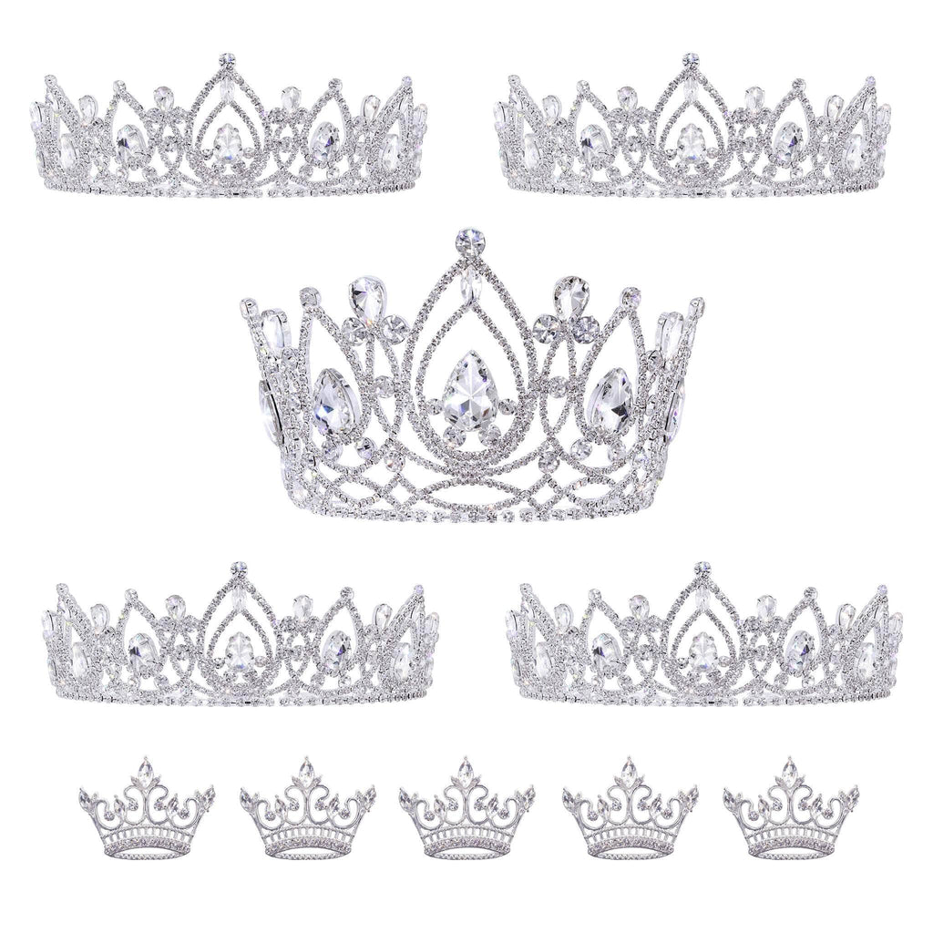 Crown the court simply with this group of matching tiaras! The #17669 Eternal Elegance Tiara is larger at 4" to make the Queen shine, while the 4 smaller 2" tall versions look just as great for the others. As a bonus, each can have their own crown pin included with this set!