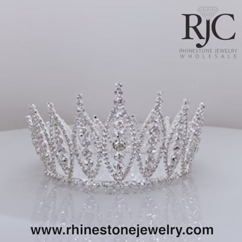 These crowns are fully round and are approximately 3.5" tall and have a 5" diameter with 4 rings inside. The design is a tapers down in the back. They are plated in Sterling Silver. Each piece is individually wrapped in plastic.