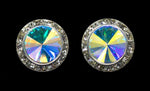 These rhinestone earrings are 20mm (13/16") in diameter. Plated in Sterling Silver. Clip Earrings. Each pair is carded and bagged.