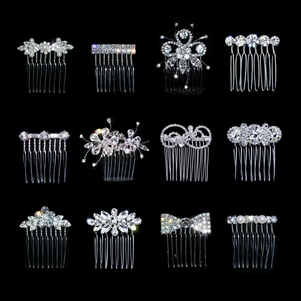 This 12 style assortment is a great way to test a group of rhinestone combs. This is a trial only for a limited time. All combs are silver plated. Sorry, no preferences. You will receive 1 pc each of the 12 styles shown in the picture. In the rare occasion that we have run out of a style in the package, we will substitute a similar one. Each piece is individually wrapped in plastic.