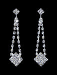 Hypo posts. These rhinestone dangle earrings are 2" long. Plated in Sterling Silver. Each pair is individually carded and wrapped in plastic.