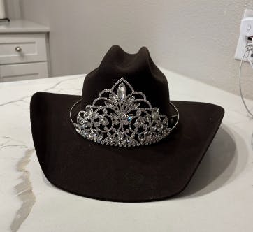 Love this affordable crown for my royalty ladies. The pin makes it stay put on the hat and the design is beautiful.